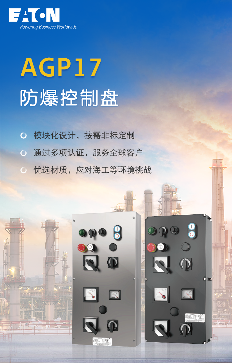 伊顿Crouse-Hinds系列AGP17防爆控制盘突破传统防爆型式,从“定制化、安全源头化、产品耐用化、运维便捷化”全方位塑造产品实力,全力保障海工、石化、矿业、食品加工、制药等行业生产控制系统安全运行。今天,让我们一起解密AGP17防爆控制盘的强大内核。